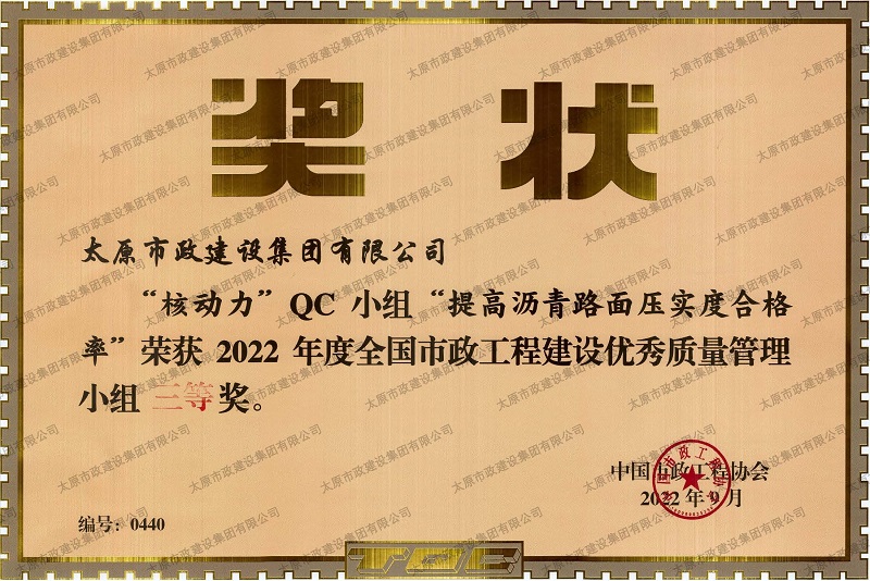 資質(zhì)證書 營業(yè)執(zhí)照 2022年度市政工程最高質(zhì)量水平評價_H5-1路道路及配套工程(二標(biāo)段) 2022年度工程建設(shè)誠信典型企業(yè) 中國施工企業(yè)管理協(xié)會_AAA級企業(yè)信用等級 2022年度全國市政工程建設(shè)優(yōu)秀質(zhì)量管理小組三等獎_''核動力QC小組”提高瀝青路面壓實(shí)度合格率”